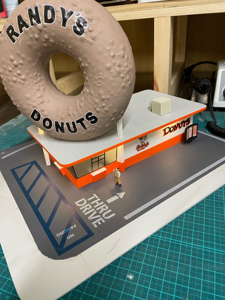 【制作完了!】1/64ミニカージオラマ巨大ドーナツが目印Randy’sDonutsのドライブスルー模型、完成しました🍩